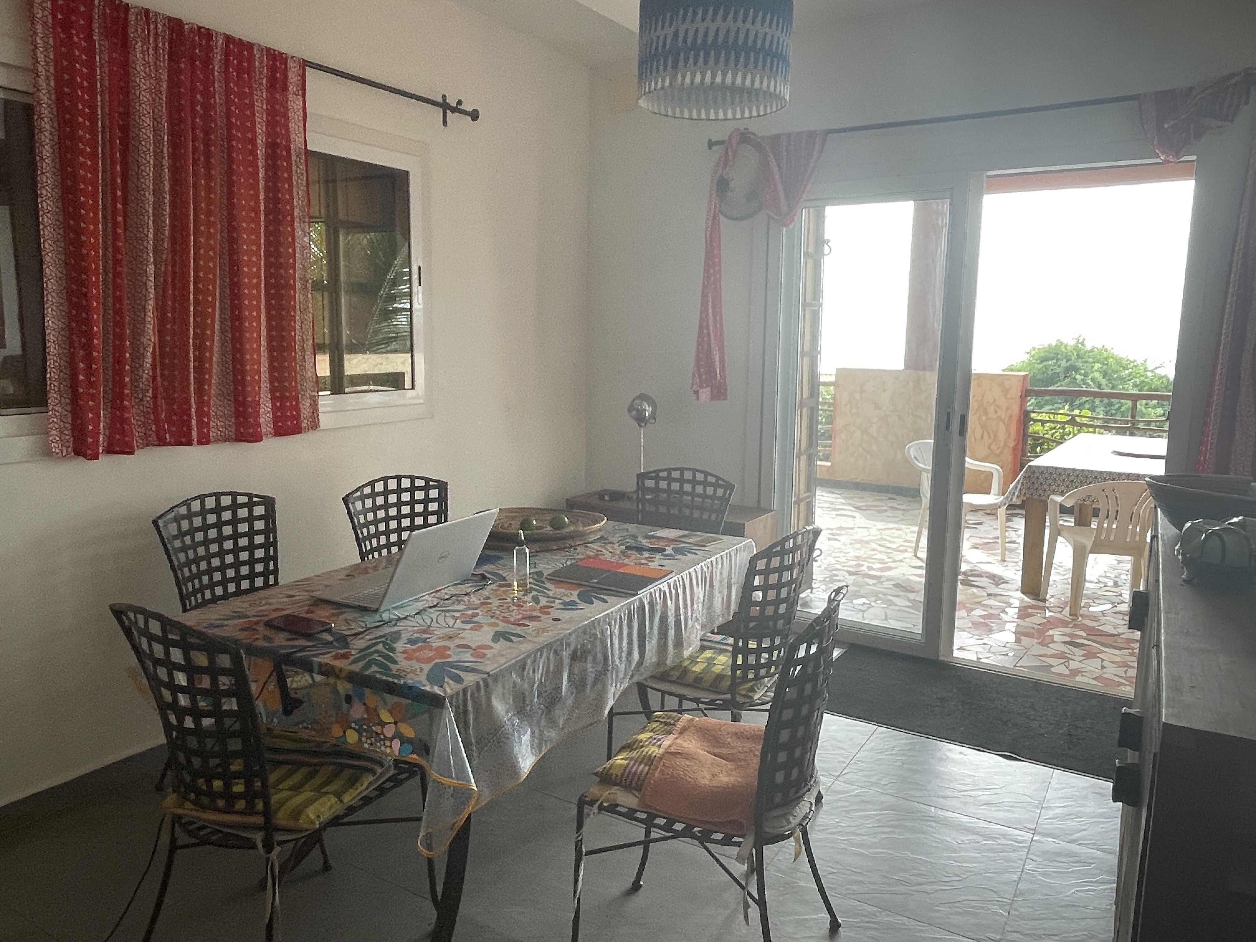 Deuxième salle à manger prolongée par une terrasse avec vue dégagée sur l’océan.