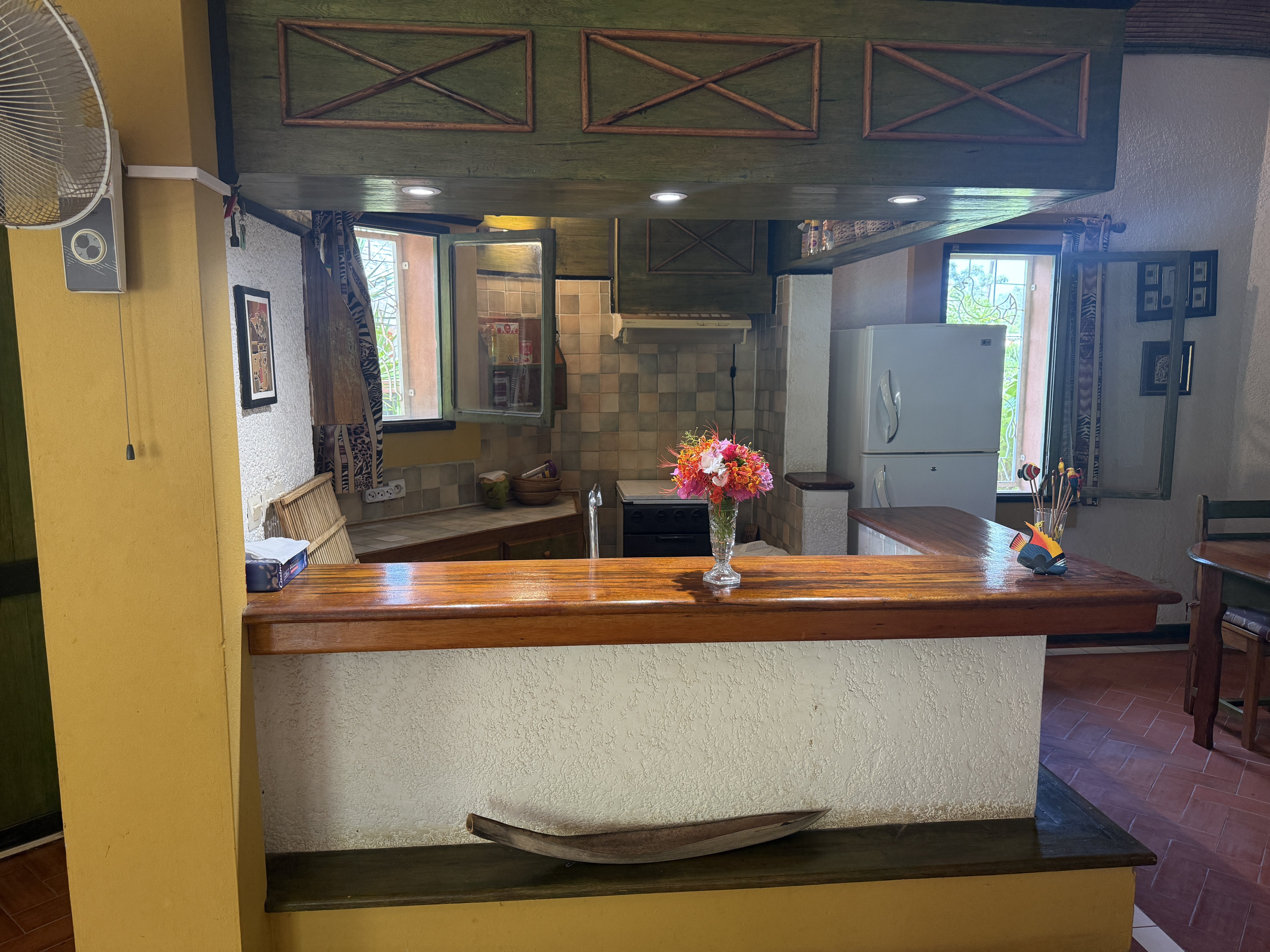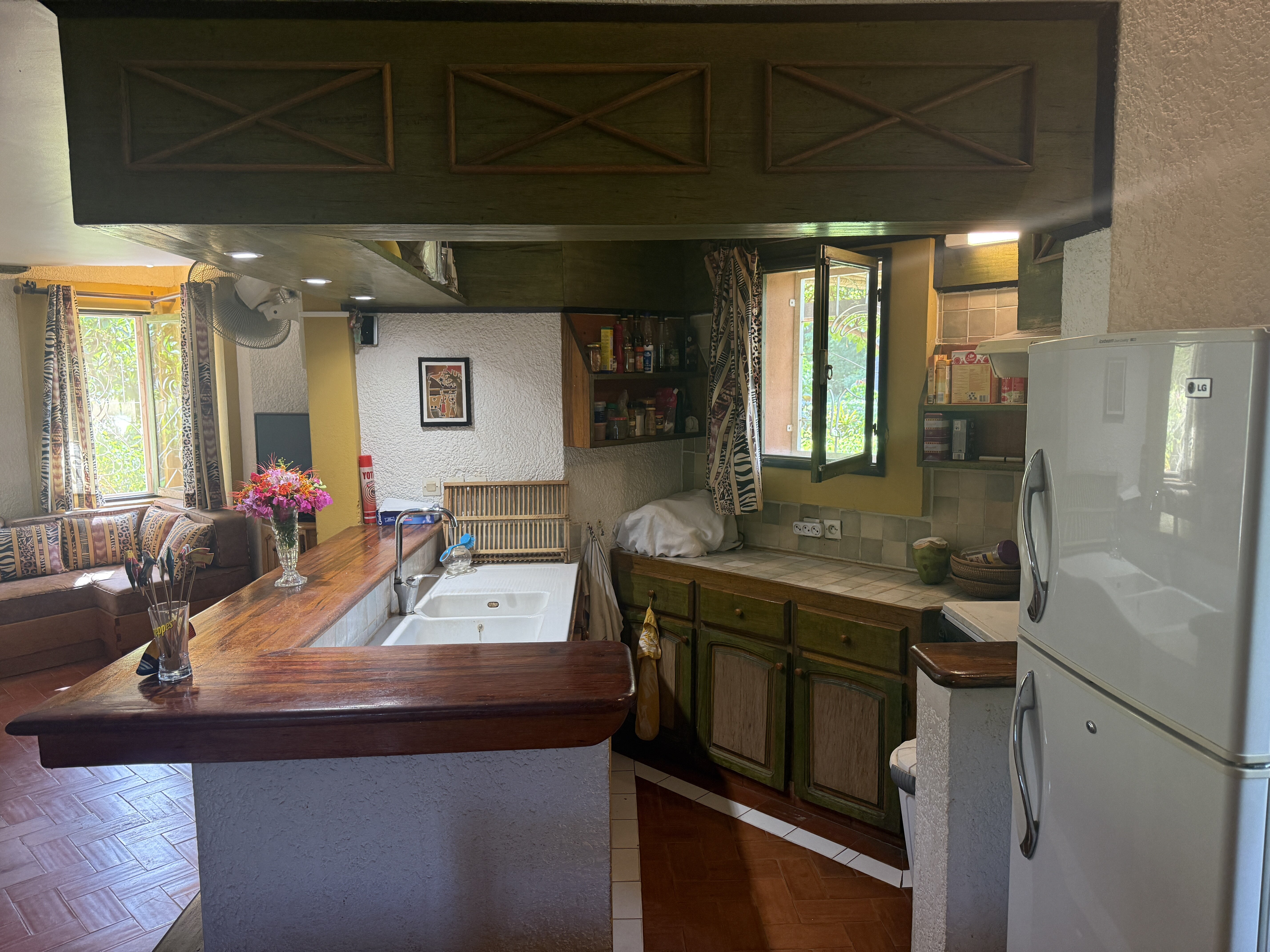 Rez-de-chaussée : beau séjour avec cuisine américaine aménagée et équipée, chambre, salle d'eau et WC visiteur.