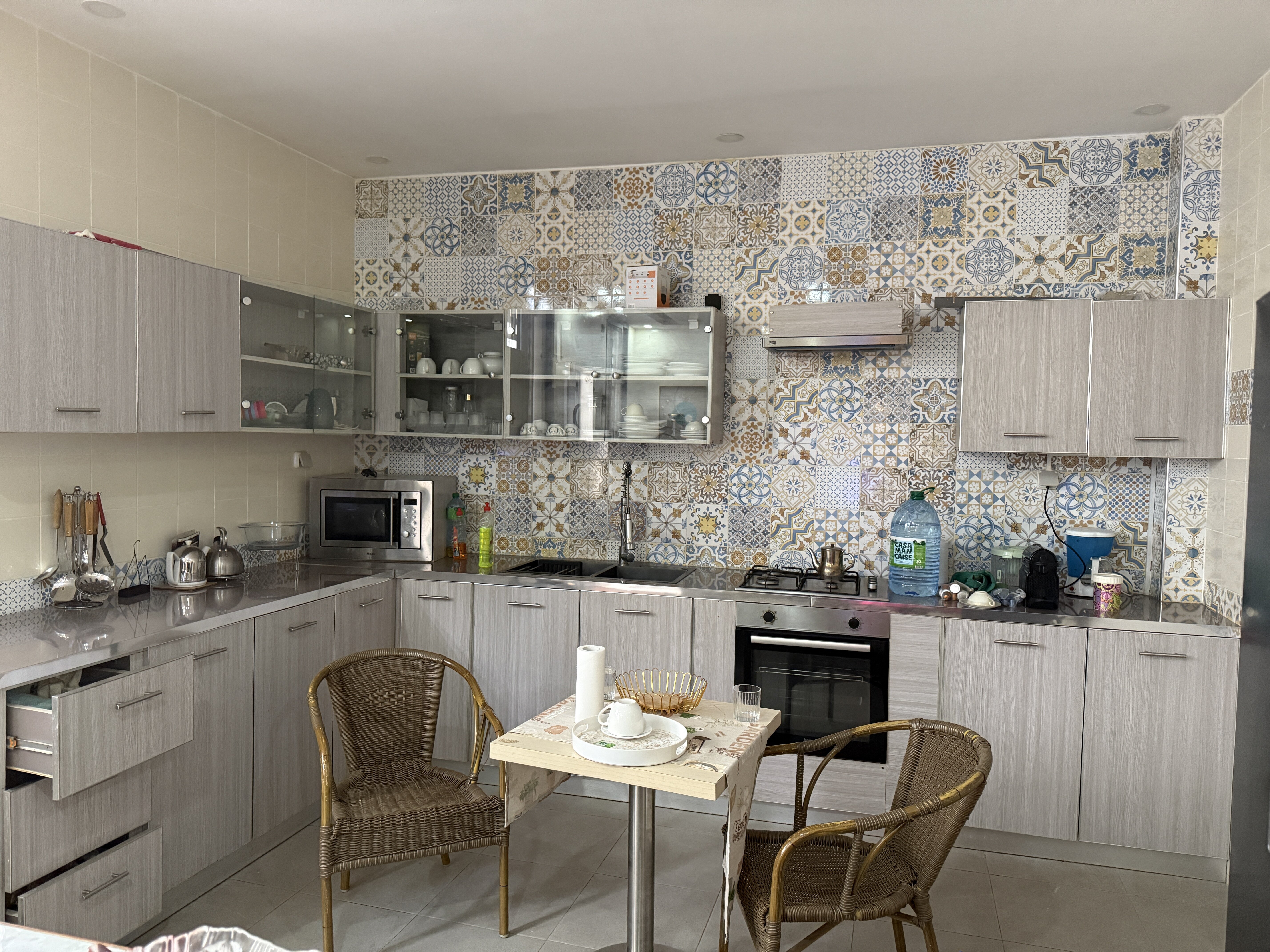 Cuisine, buanderie, réserve d'eau et WC extérieur