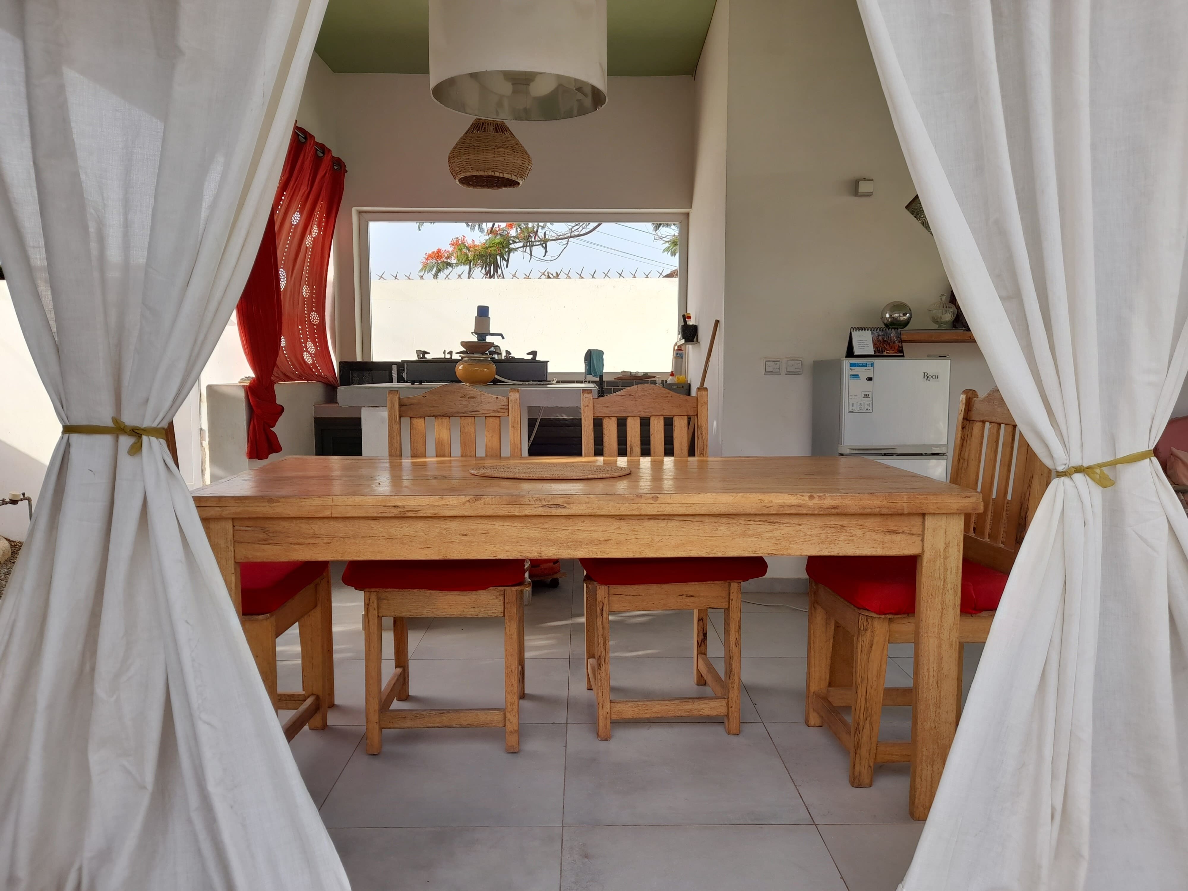 une cuisine , une salle à manger