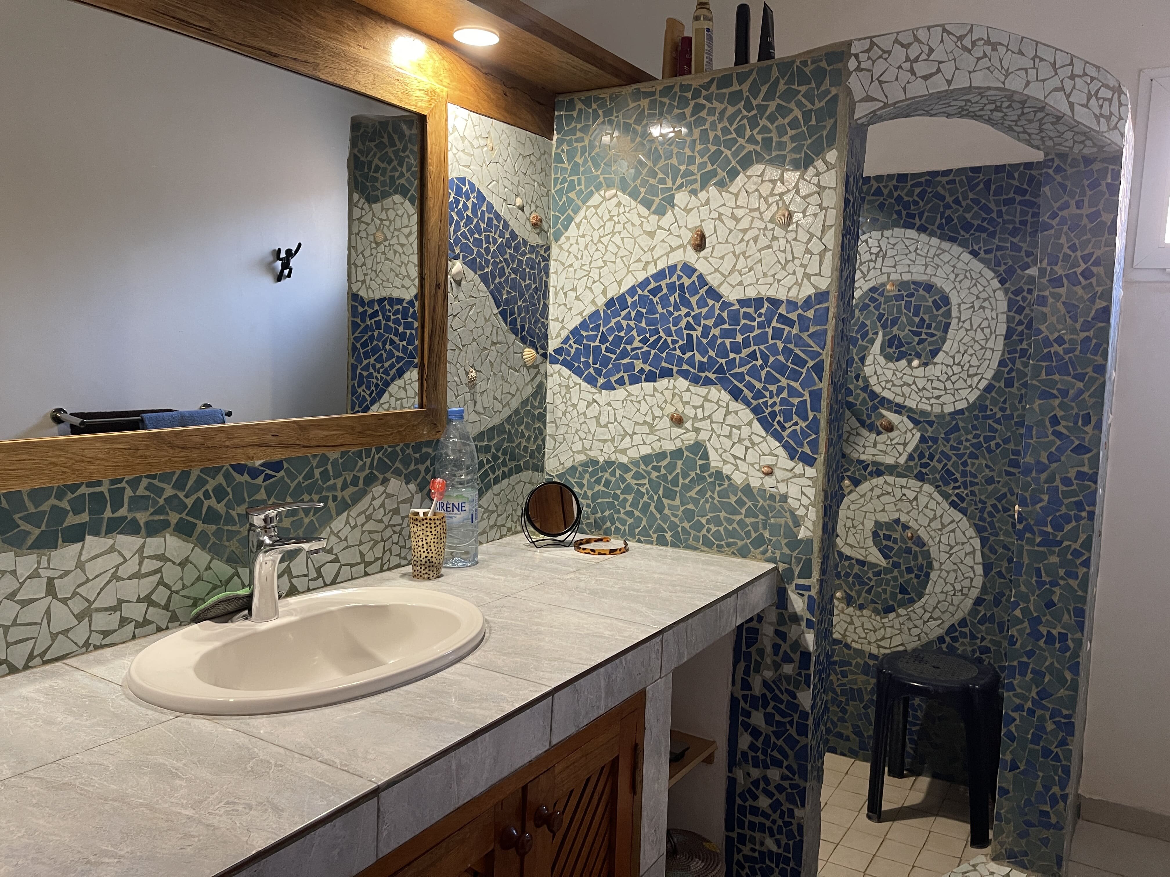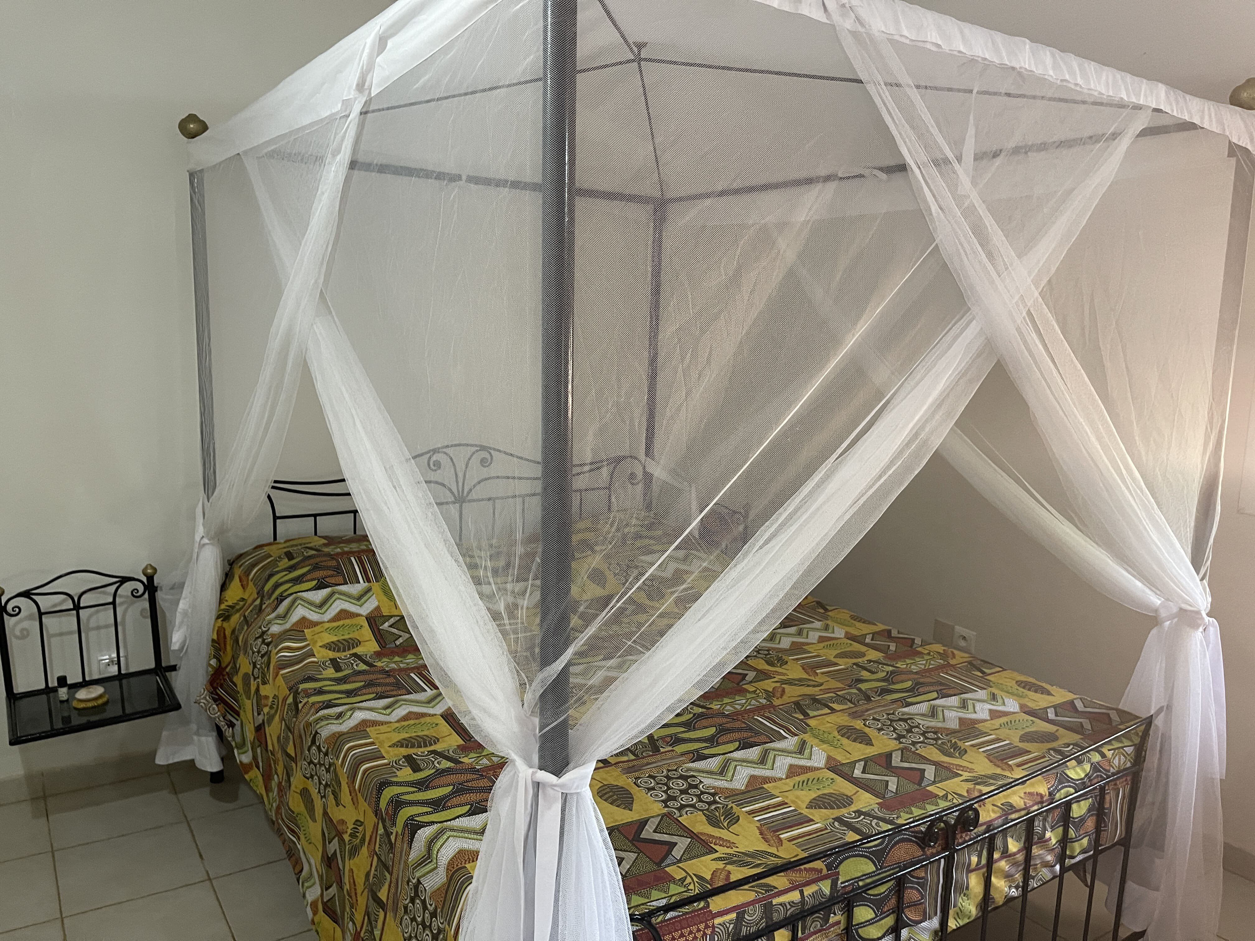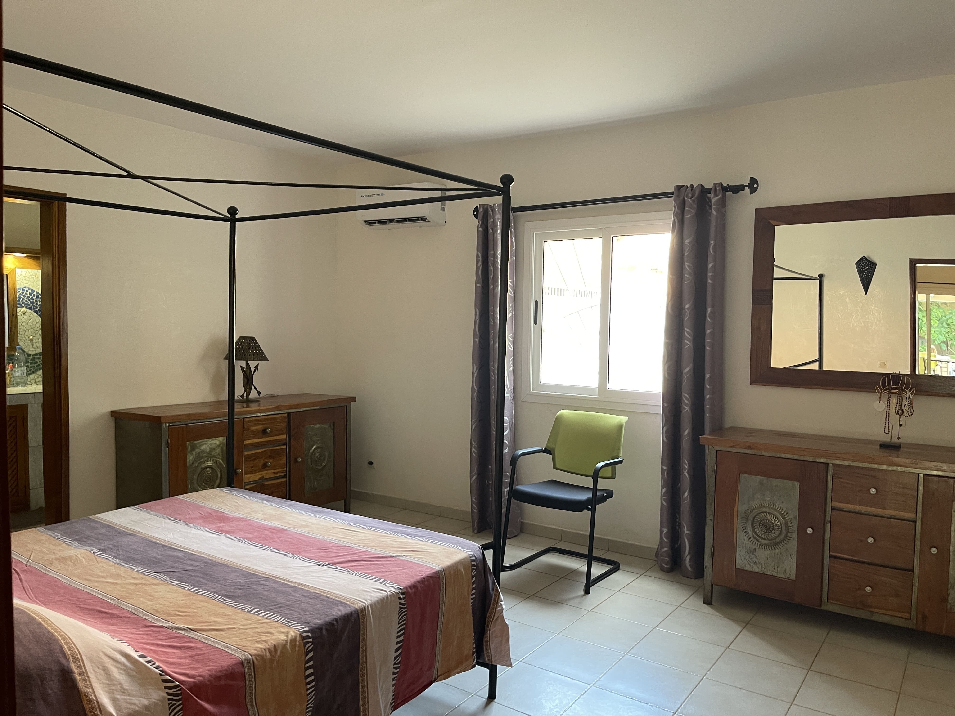 Deux chambres climatisées, chacune avec salle d’eau privative.