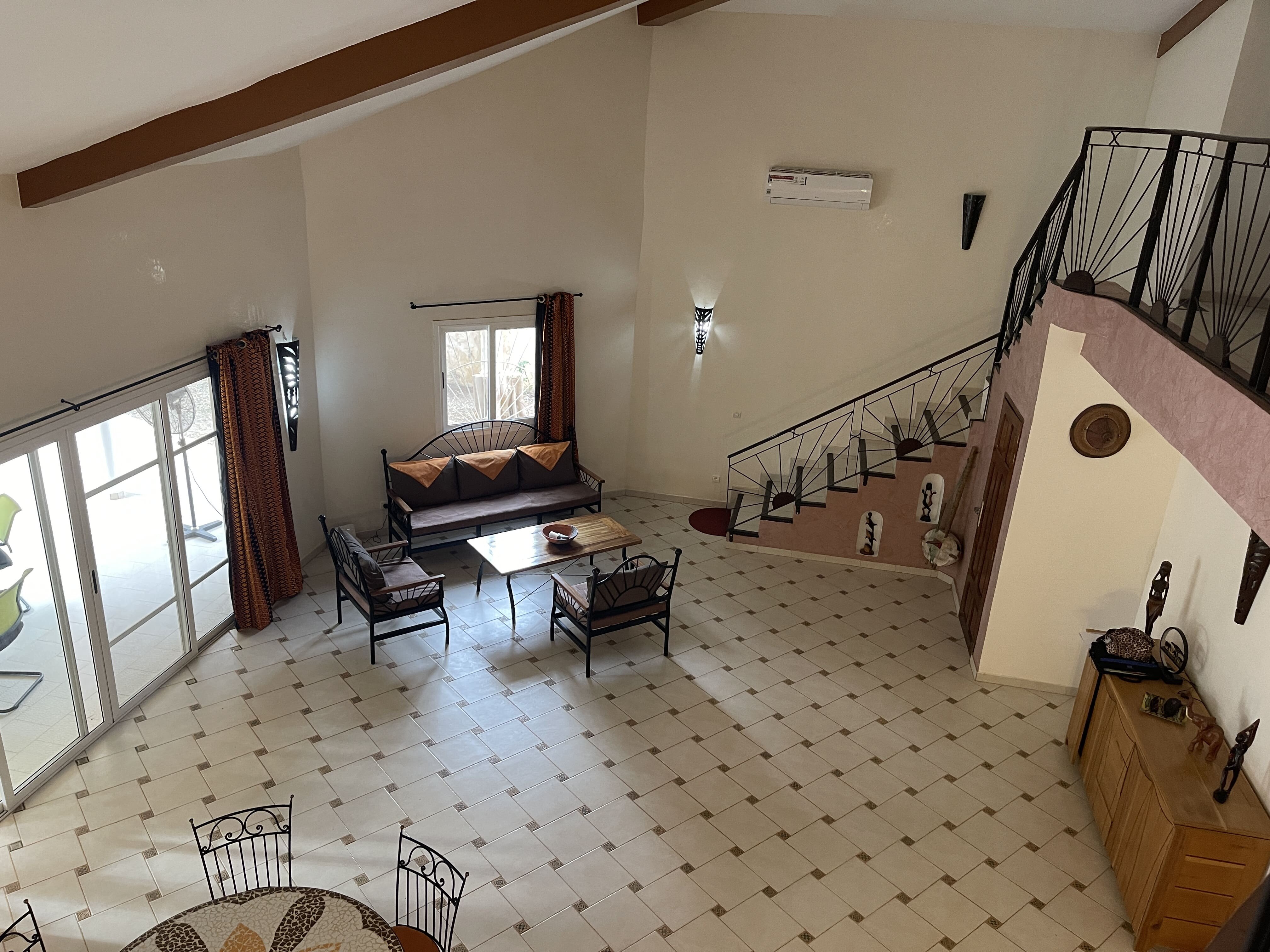Belle terrasse intérieure avec vue plongeante sur le salon.
