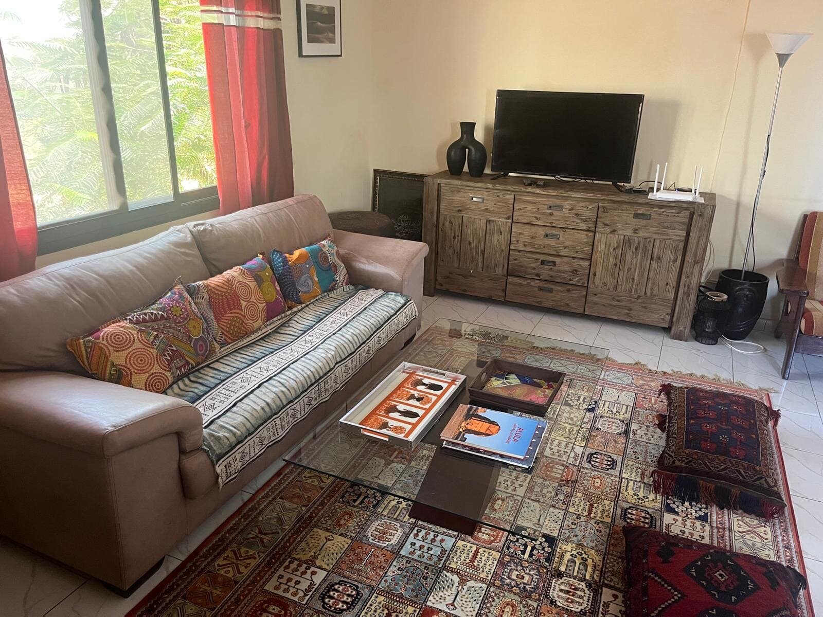 Un séjour avec cuisine américaine aménagée et équipée