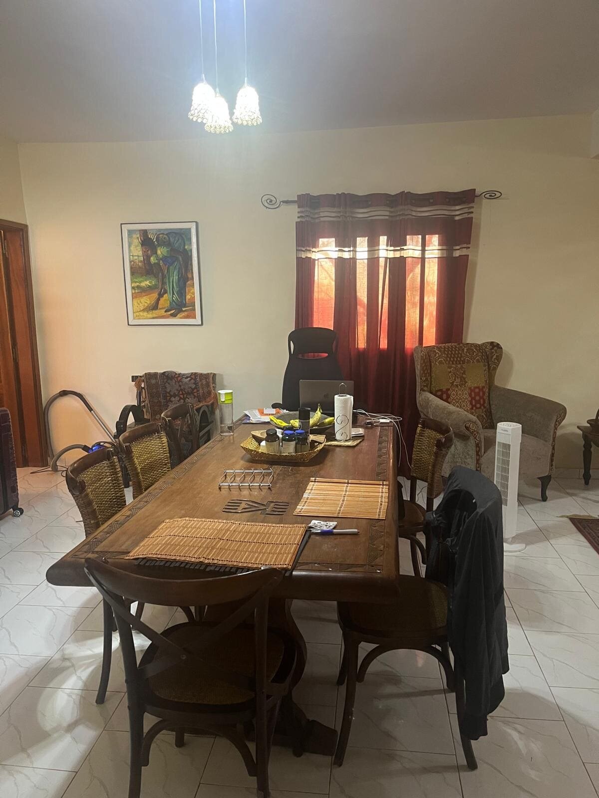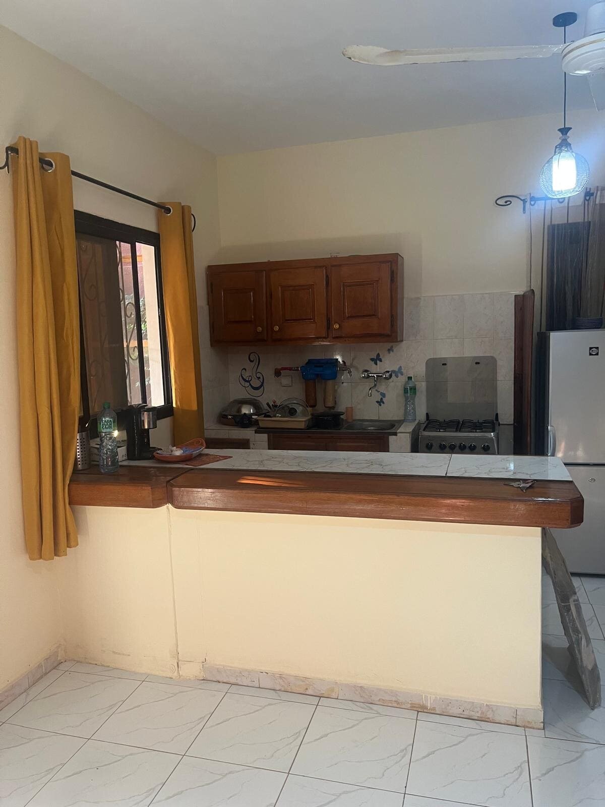 Séjour : ventilateur + cuisine américaine aménagée et équipée 36,50m2