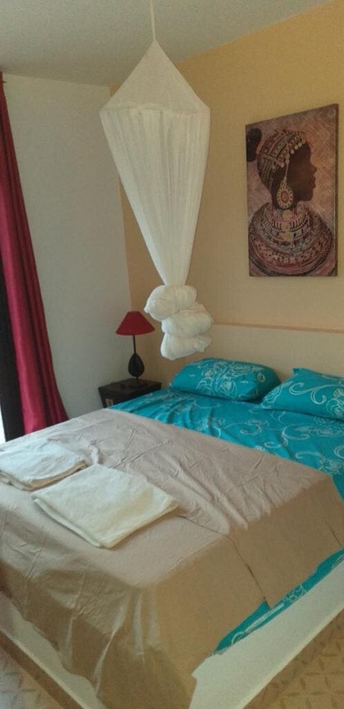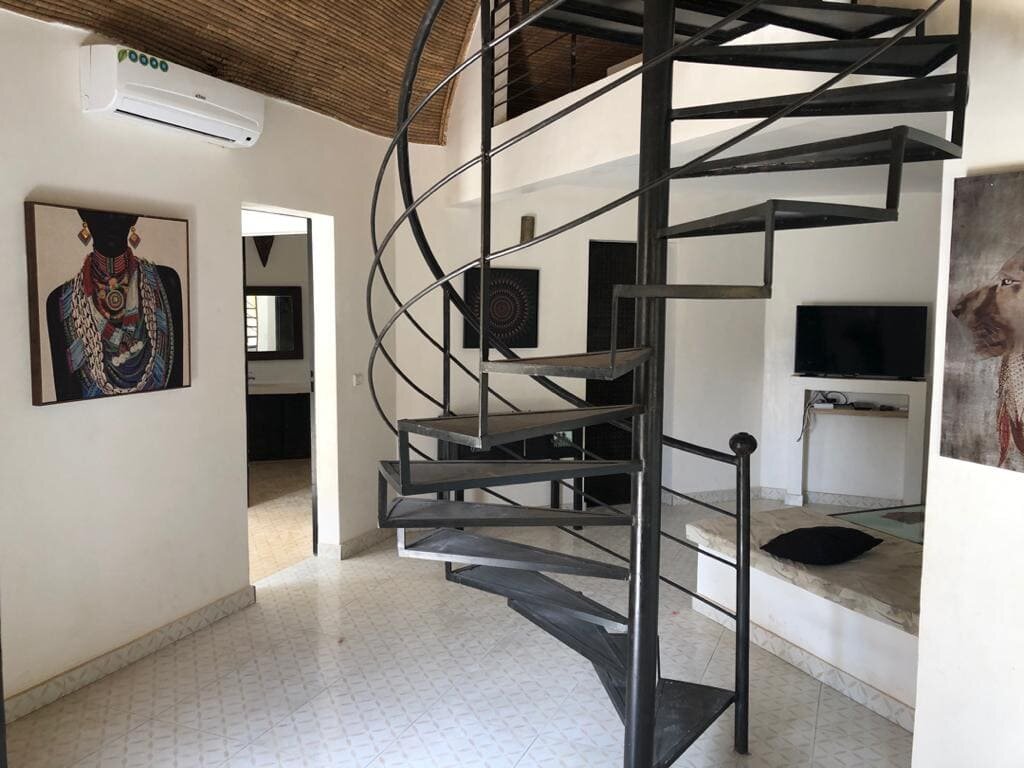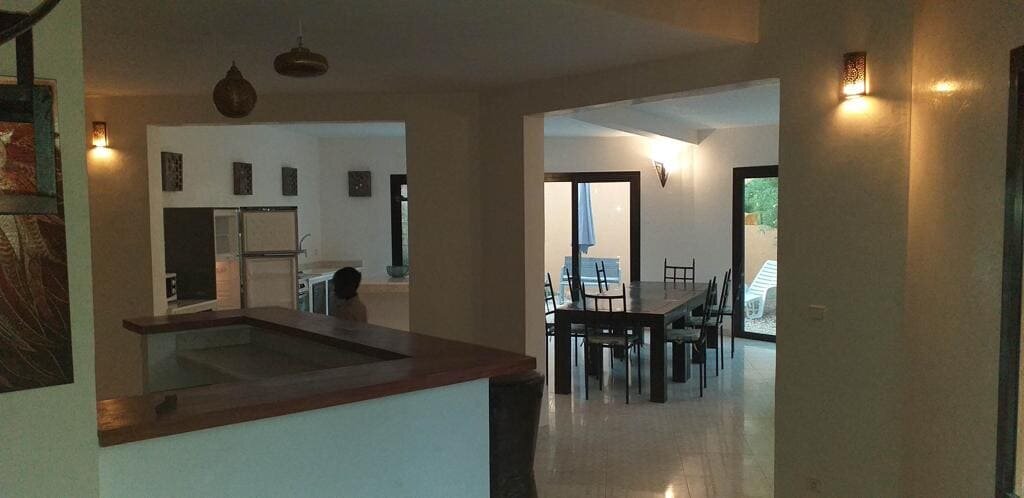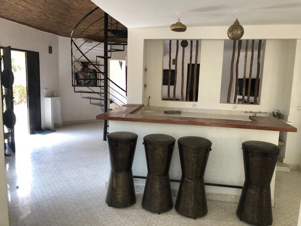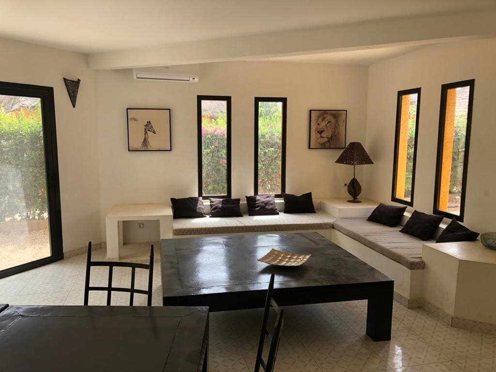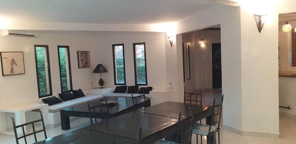 Découvrez cette belle villa afro-contemporaine située au centre de la station de Saly, dans une résidence sécurisée et proche de la plage. Cette propriété comprend :