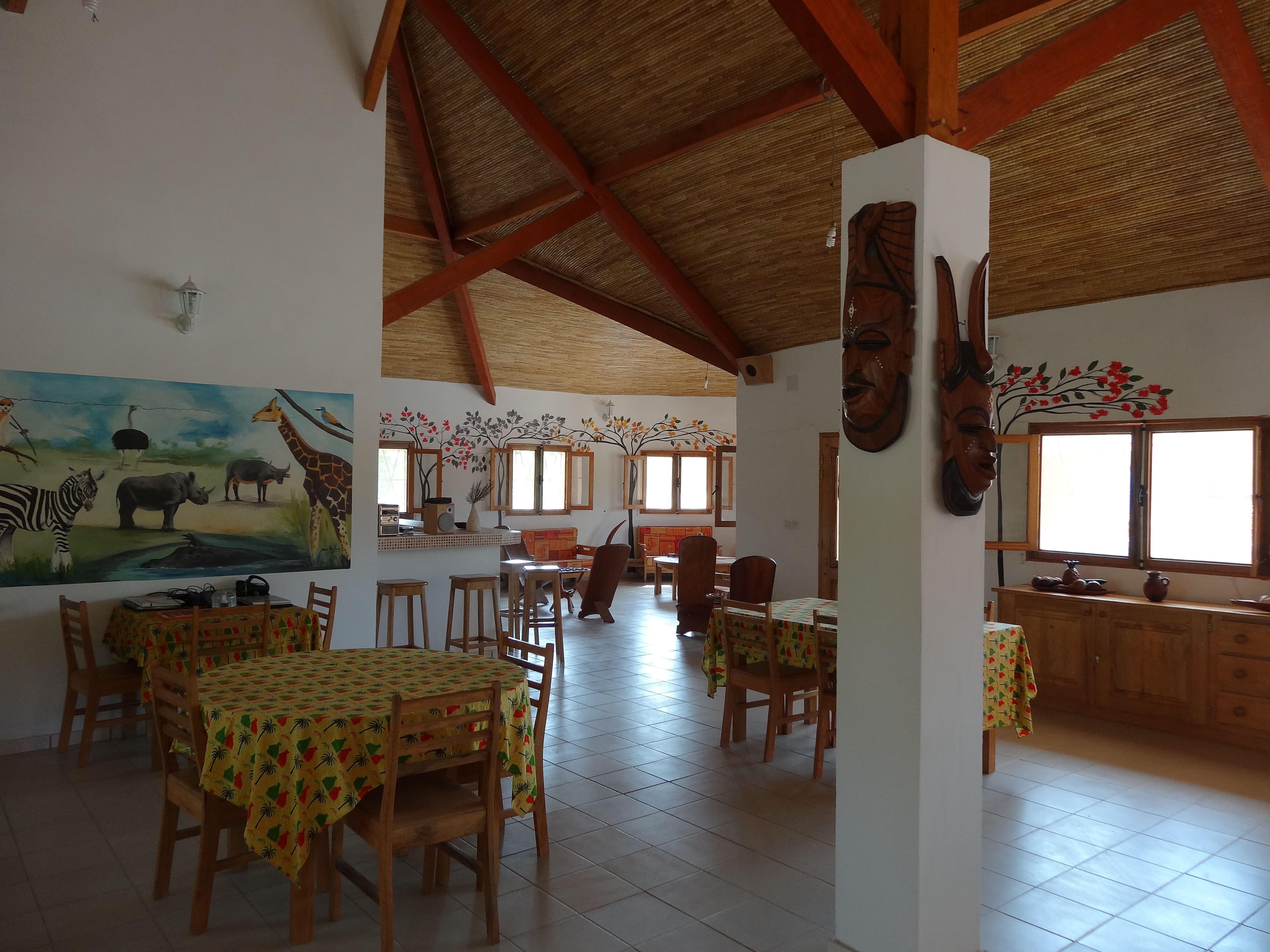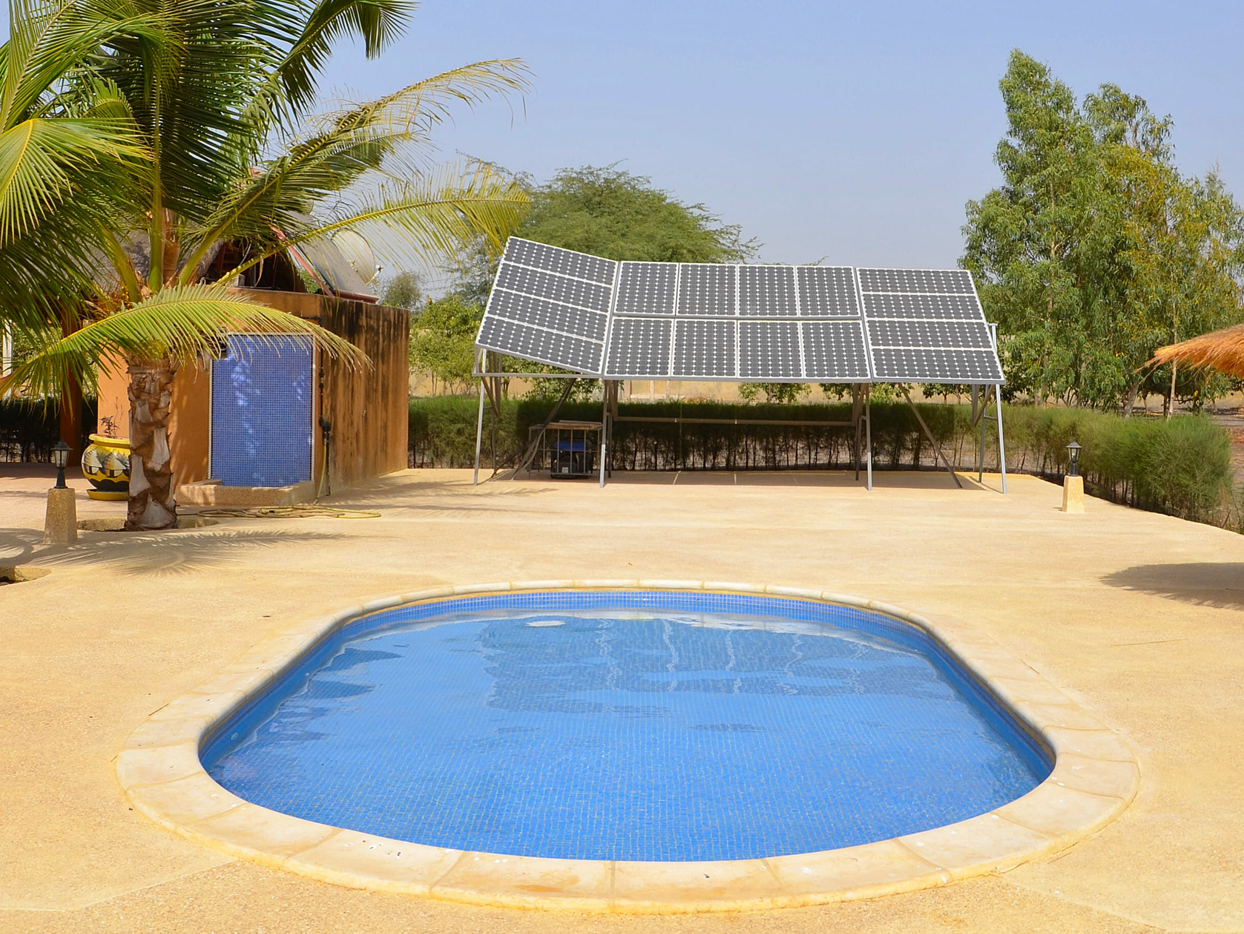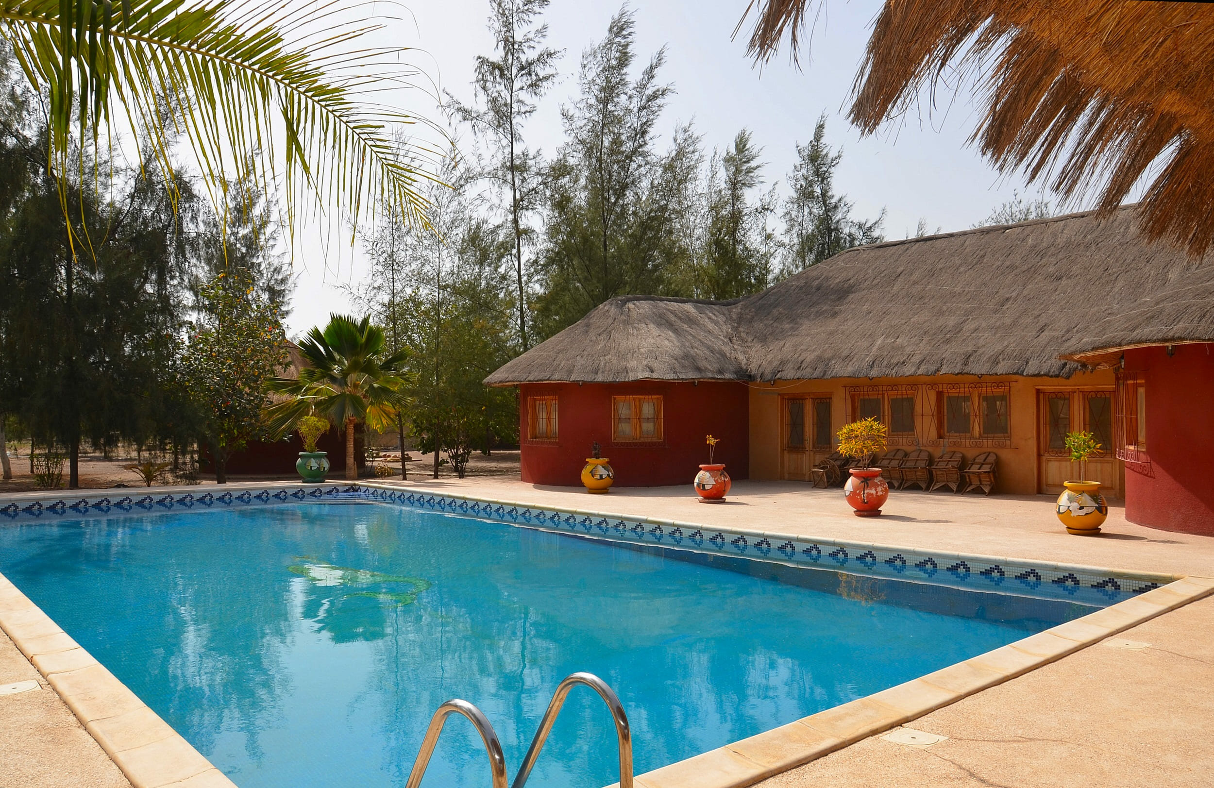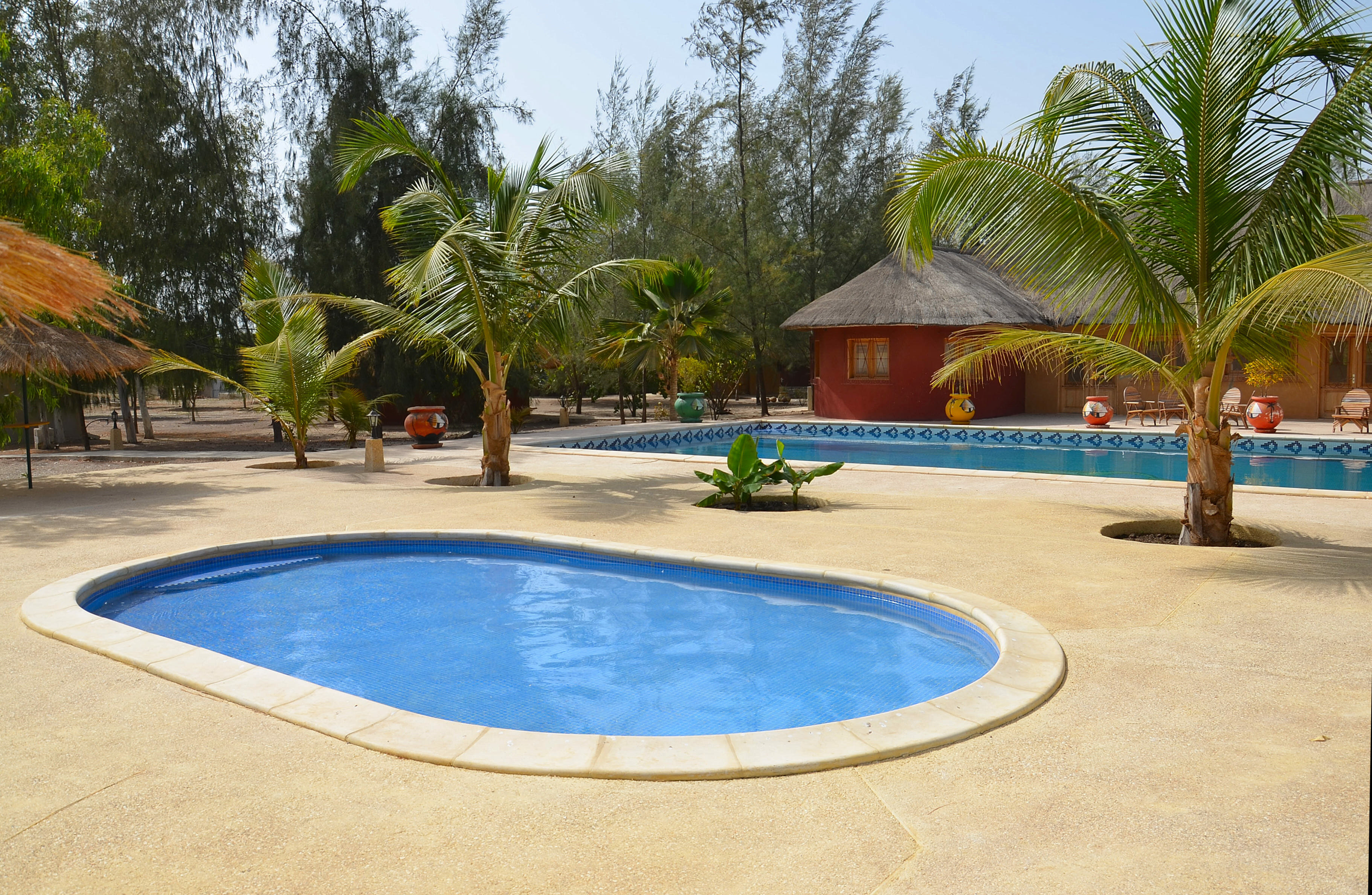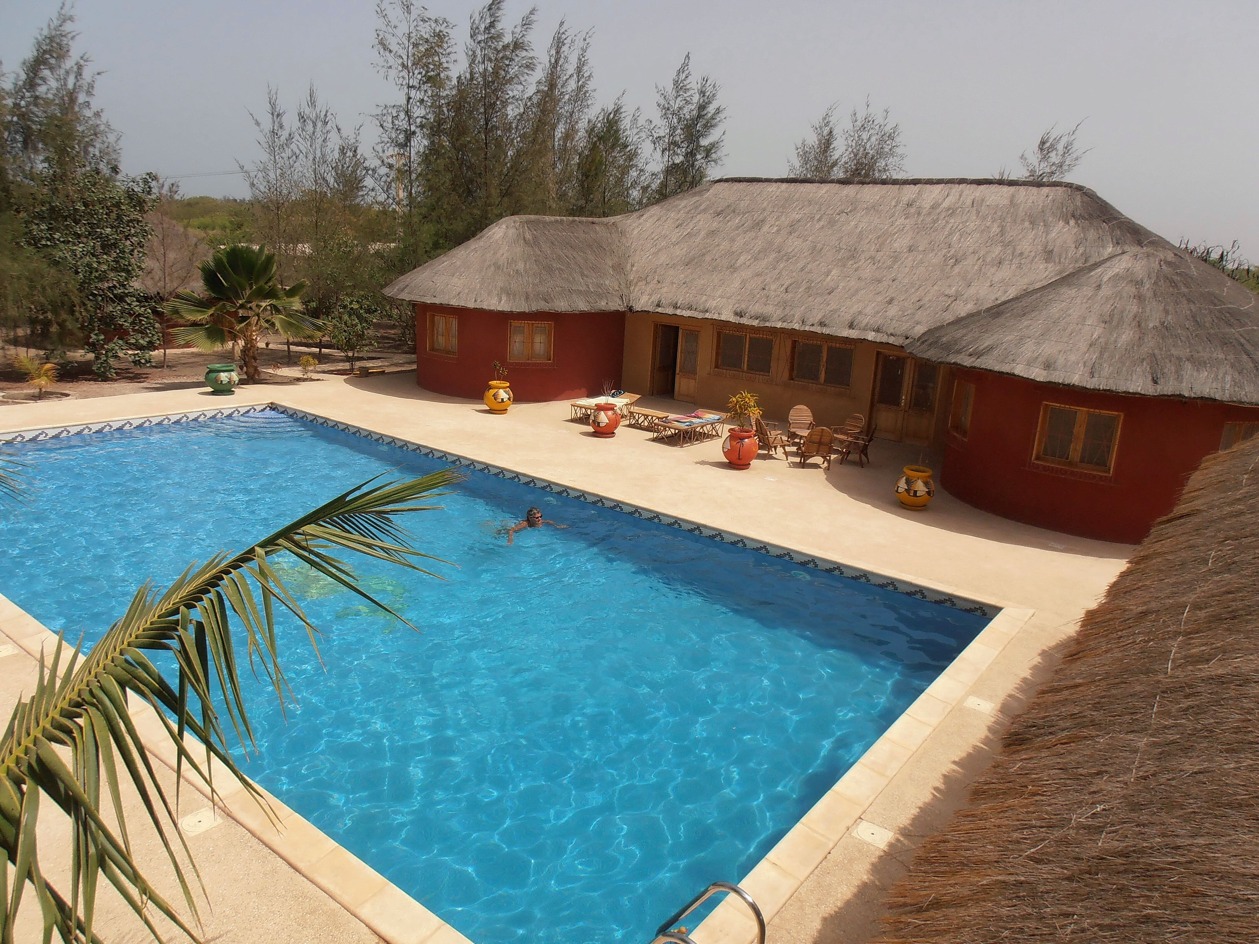 La grande piscine est un véritable oasis de détente, avec une vue magnifique sur le majestueux baobab. Des paillotes sont disposées autour de la piscine pour vous permettre de vous relaxer et de profiter du cadre exceptionnel. Une grande paillote est également prévue pour les repas en plein air, offrant une atmosphère conviviale et chaleureuse. Cet espace détente est un véritable havre de paix, où vous pourrez vous ressourcer et profiter de la beauté de la nature.